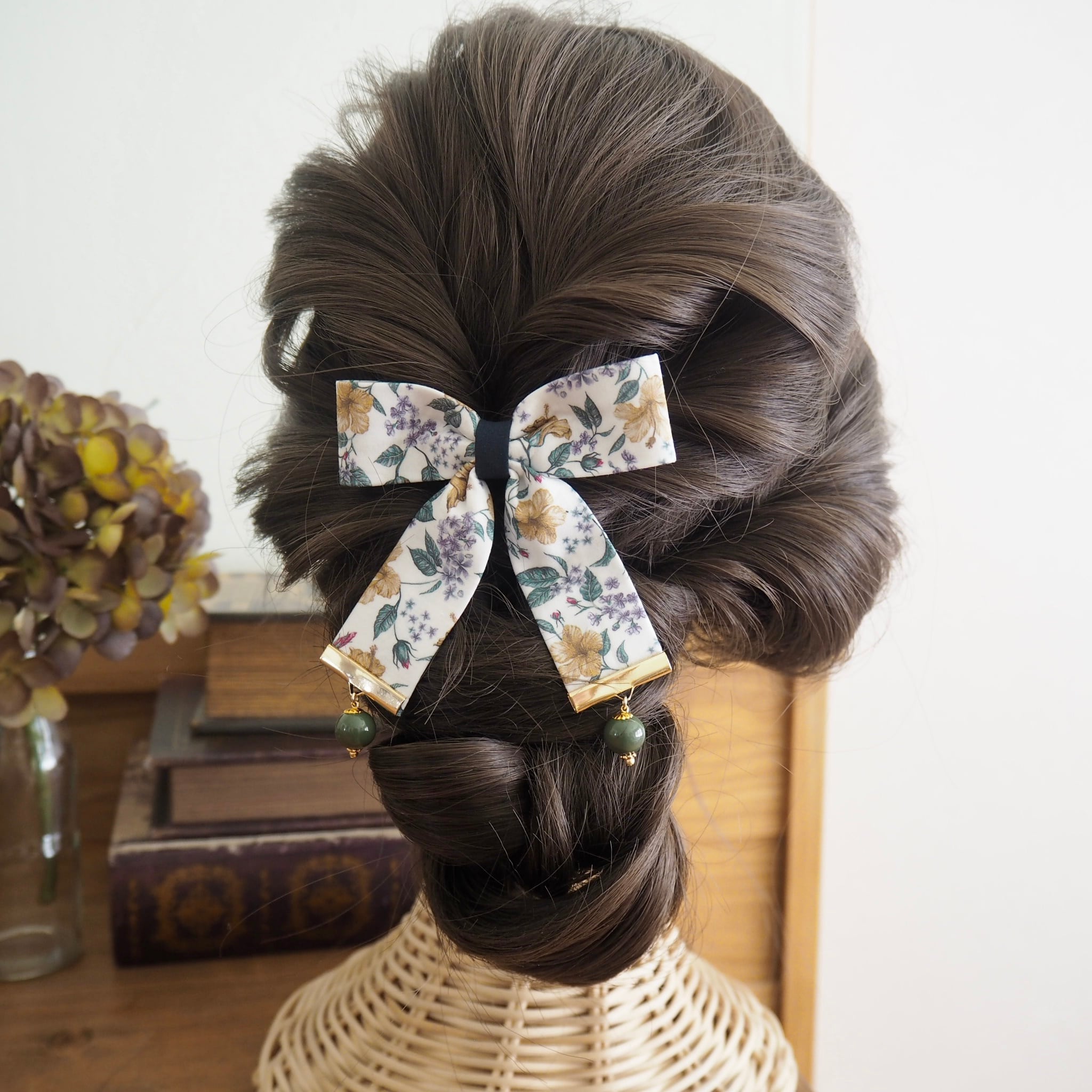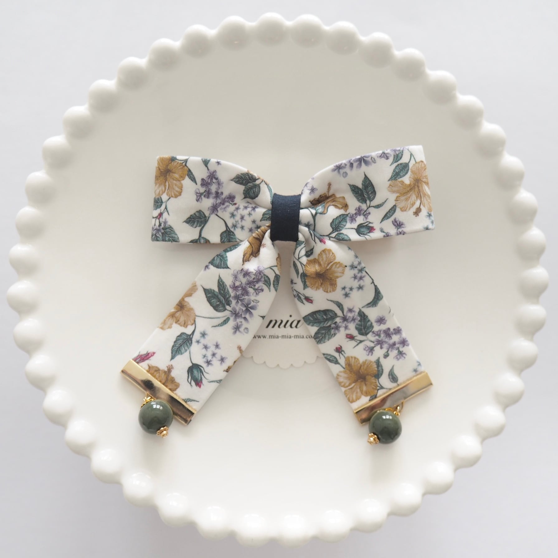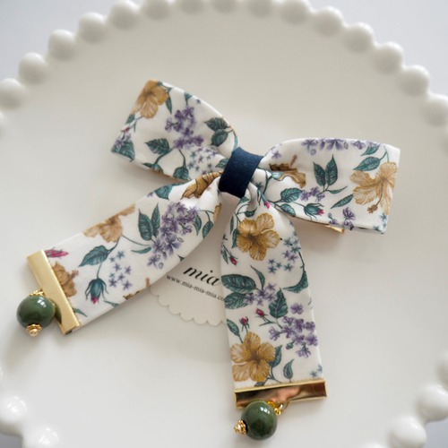 英国発ファブリックブランド・リバティ社のタナローン生地を使用し、25mm幅の両面リボンクリップに仕立てました。