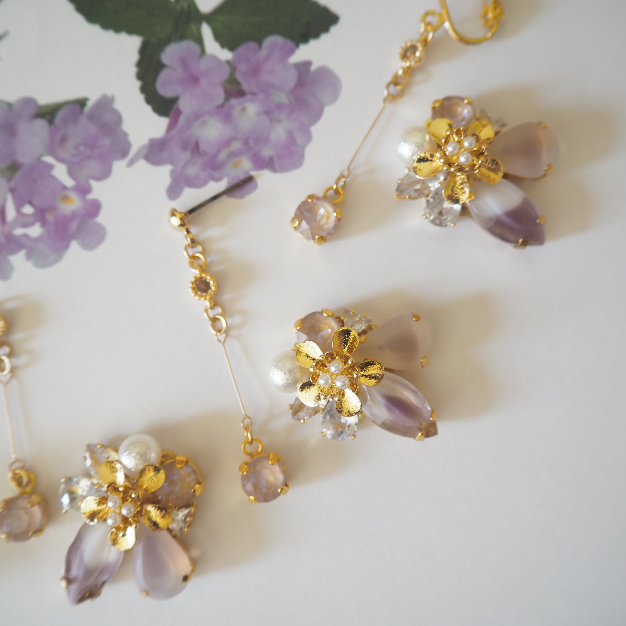 このままの組み合わせで両耳を楽しんでいただいてもいいですし、お手持ちの耳飾りと組み合わせて楽しんでいただいても◎