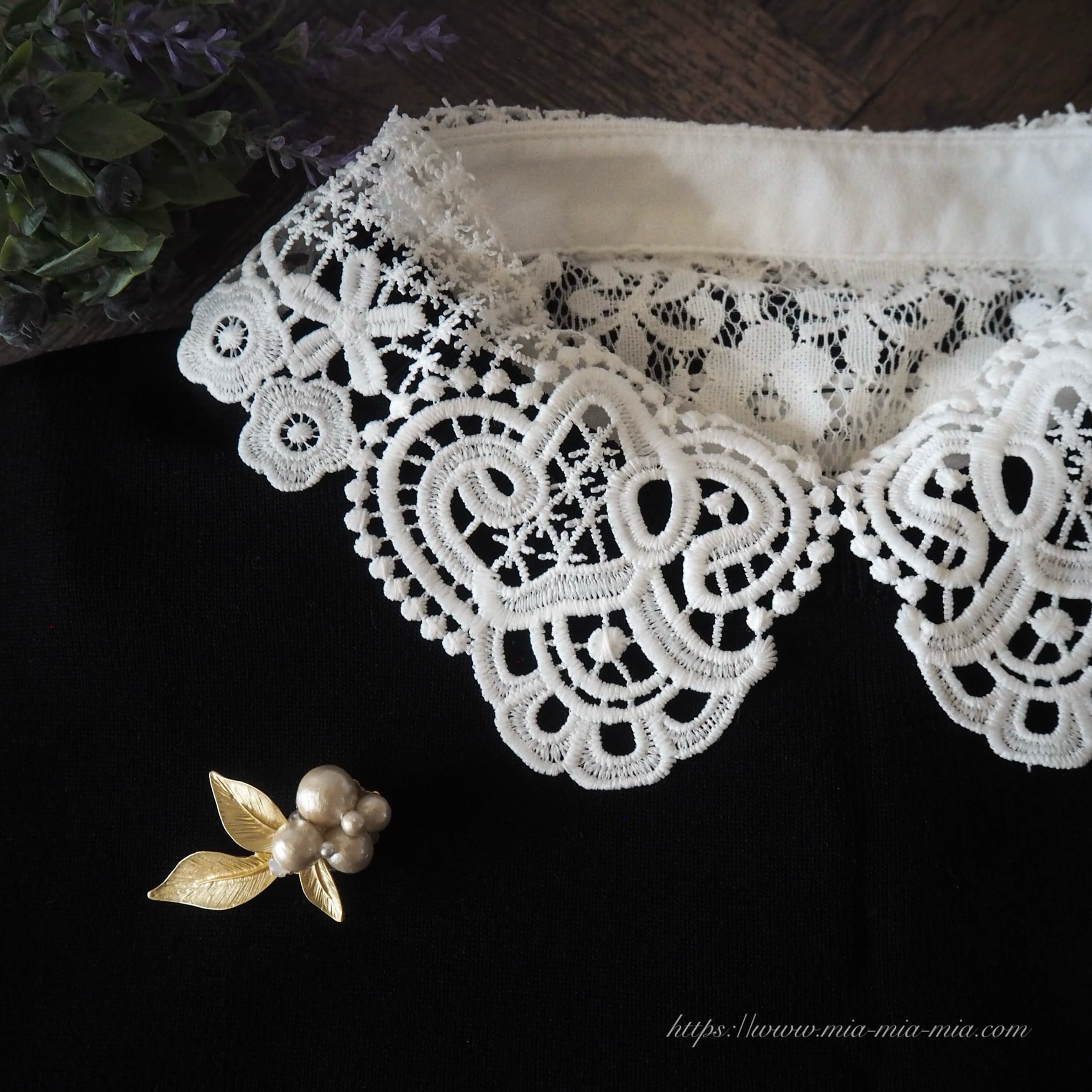 マットゴールドのボタニカルモチーフとコットンパールの組み合わせが魅力的なブローチ。