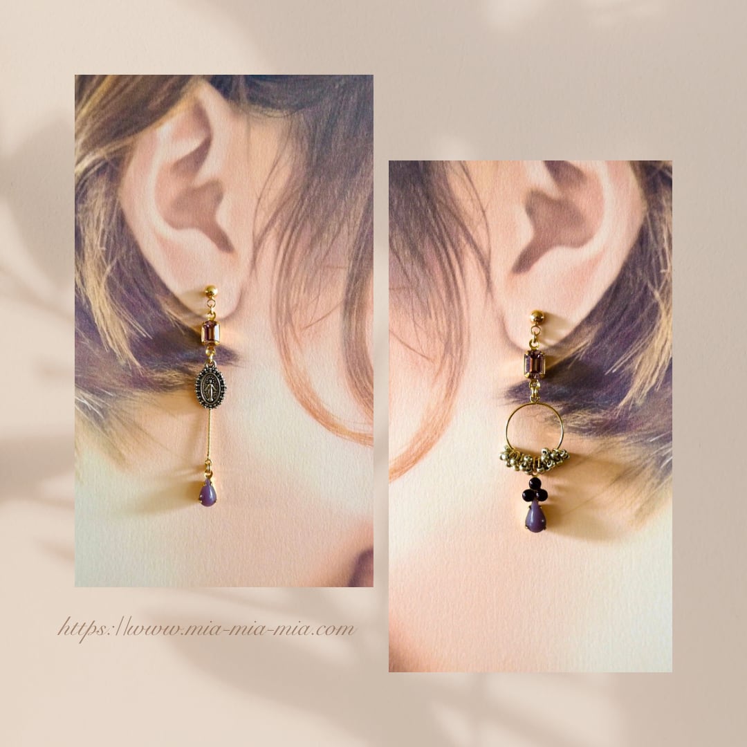 お手持ちのアイテムと組み合わせたり片方だけでつけていただいたり…左右で異なる表情を楽しめるアートピースのようなアクセサリーです。