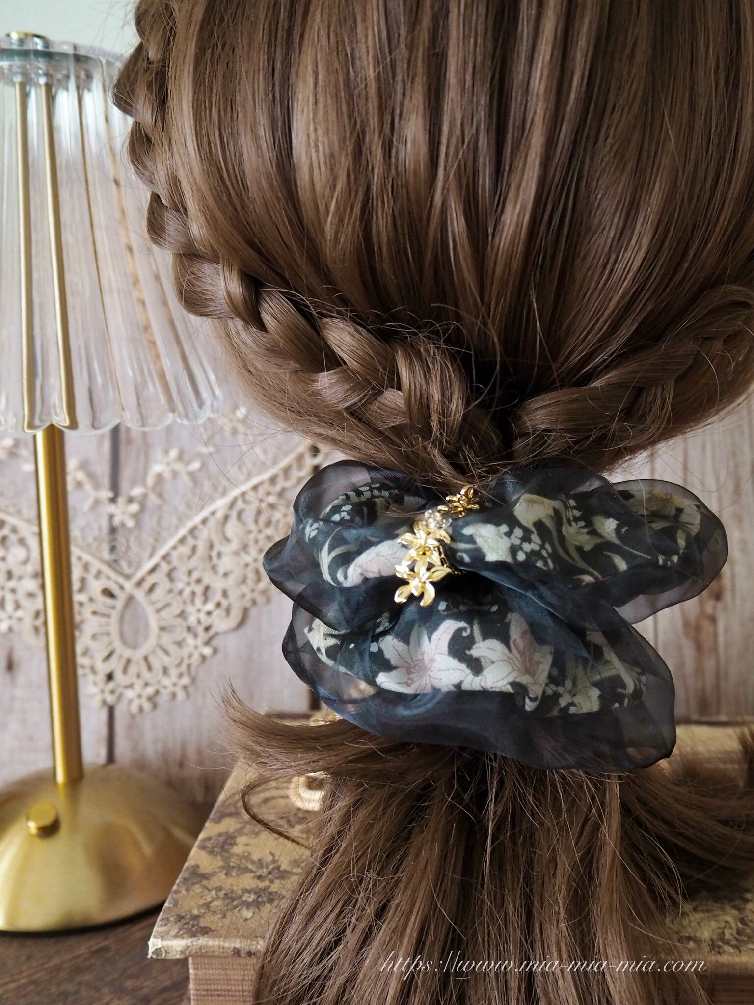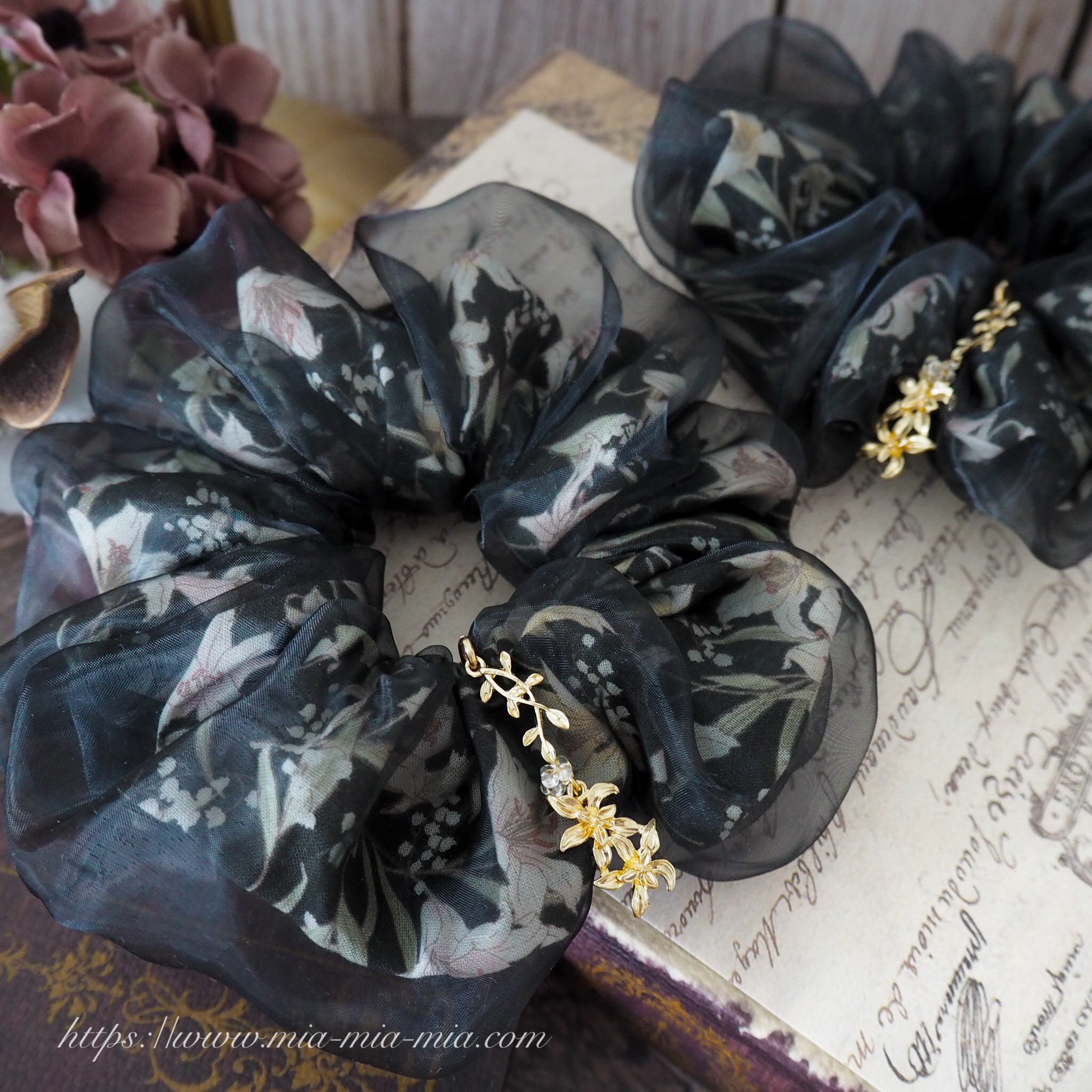 エアリーシュシュ/チャーム取り外し可能 ブラックリリー
