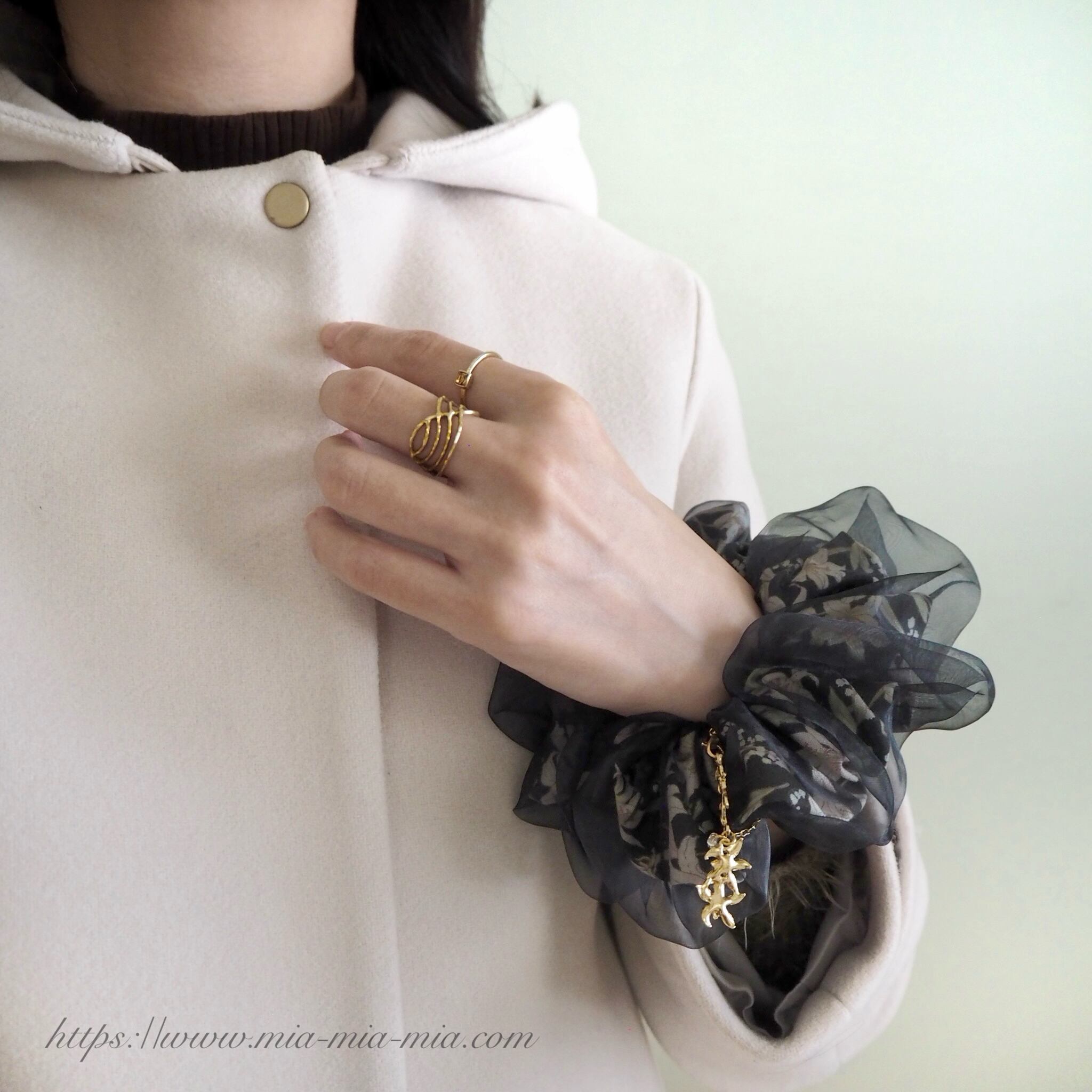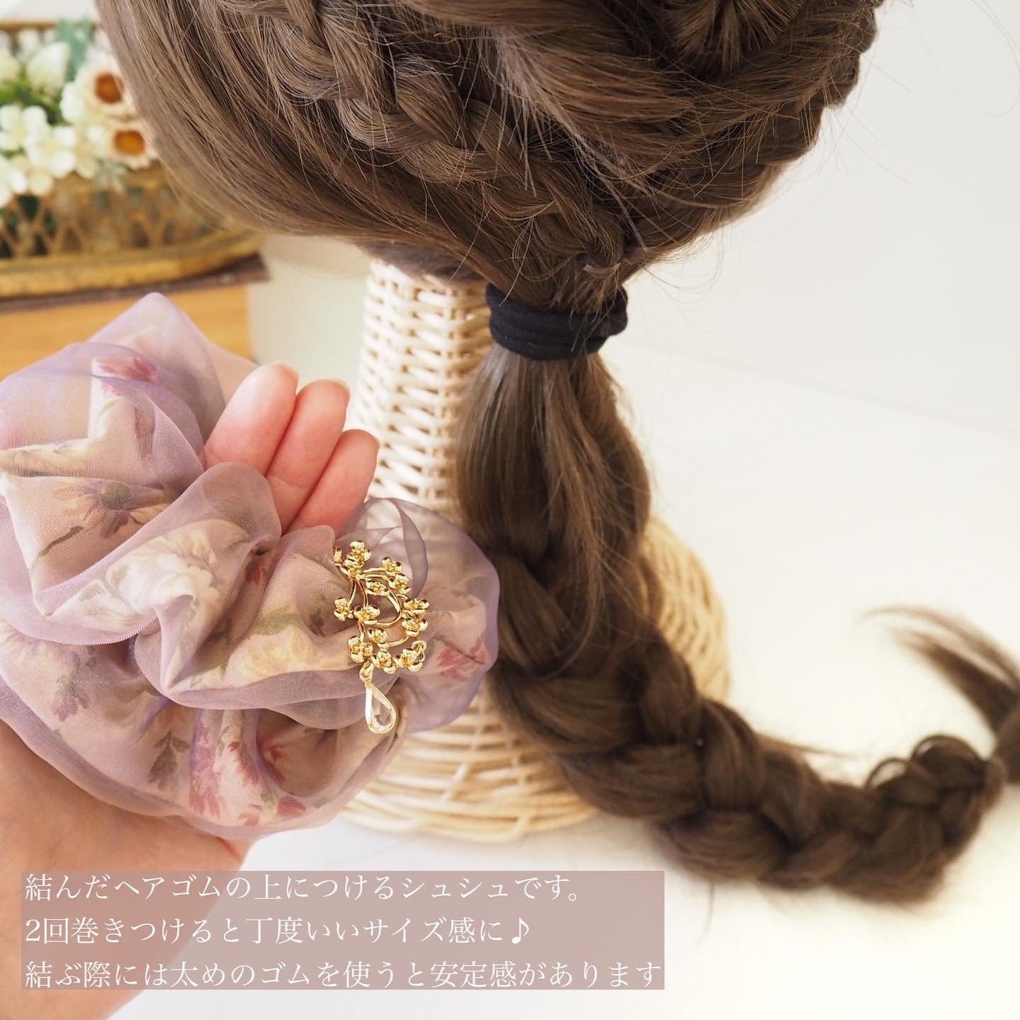 ☆オーガンジーの透け感と柄を楽しめるシュシュ。