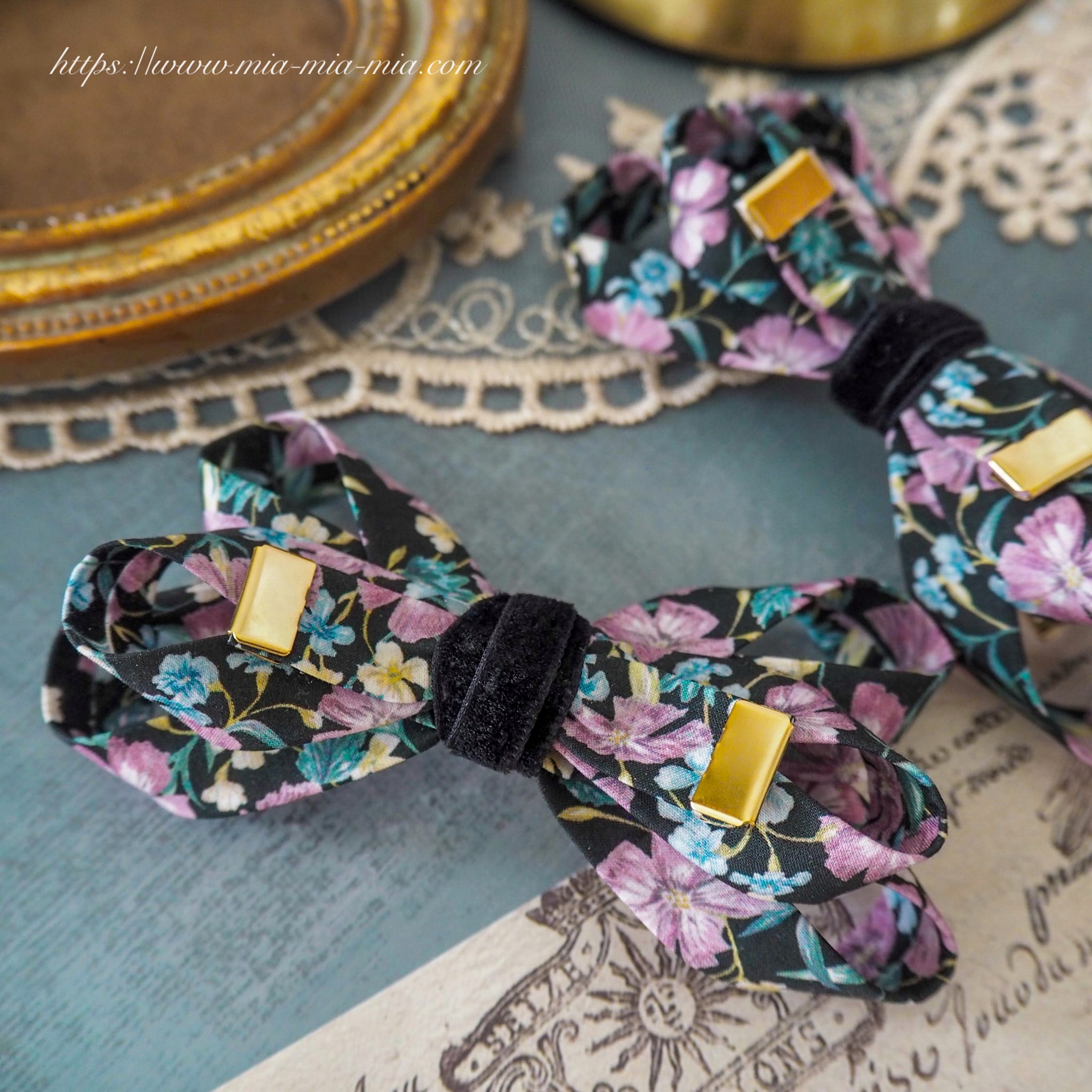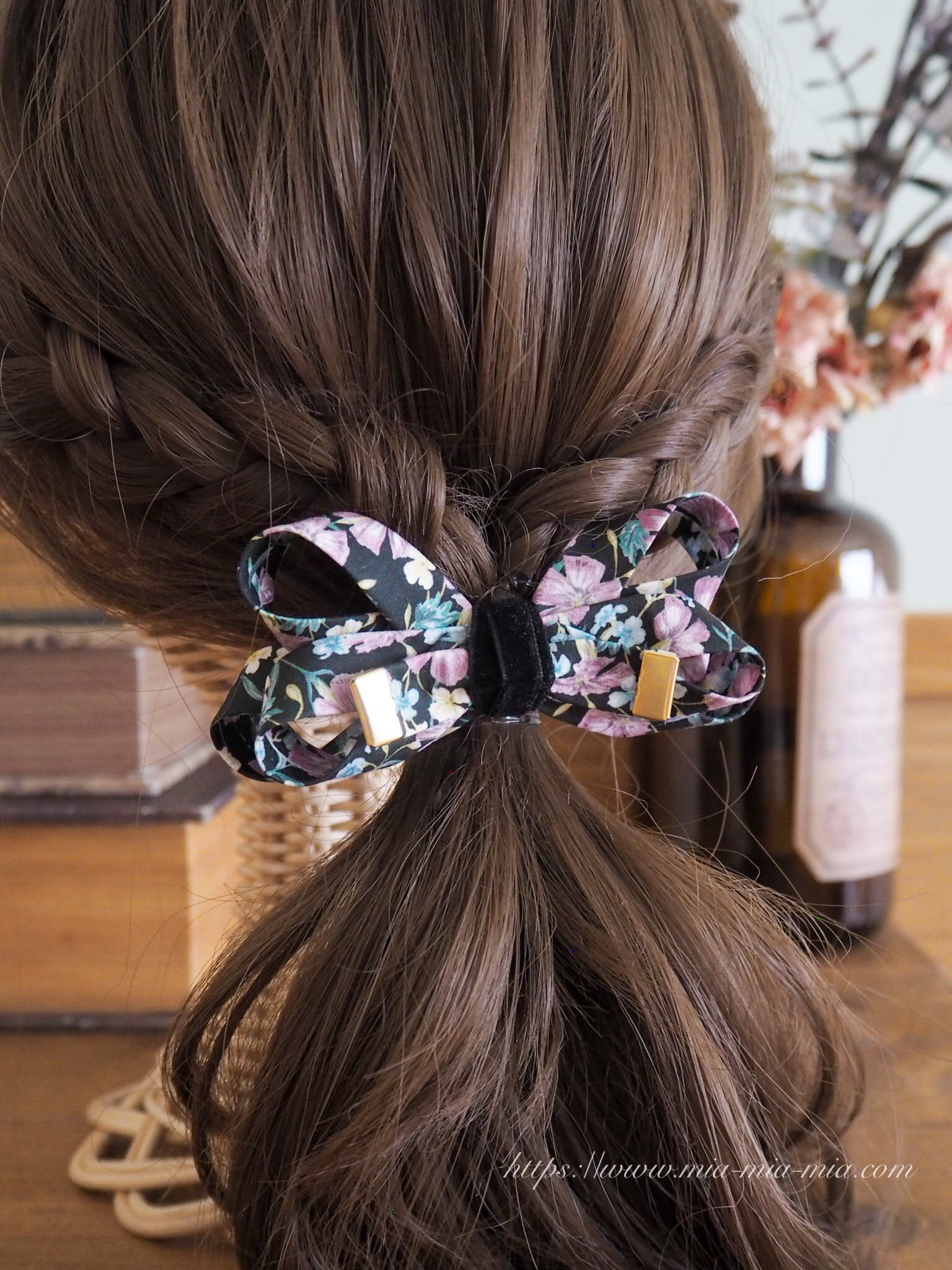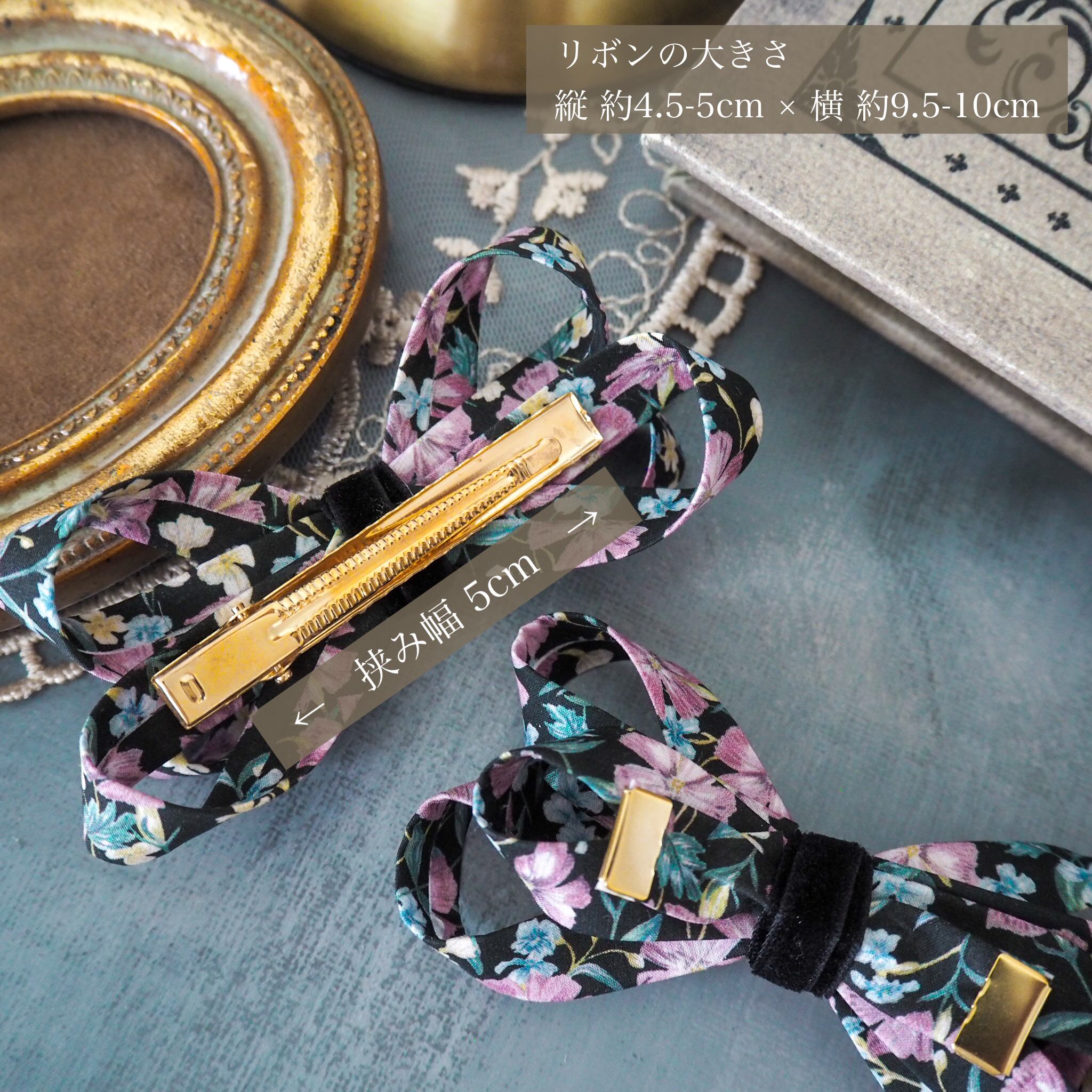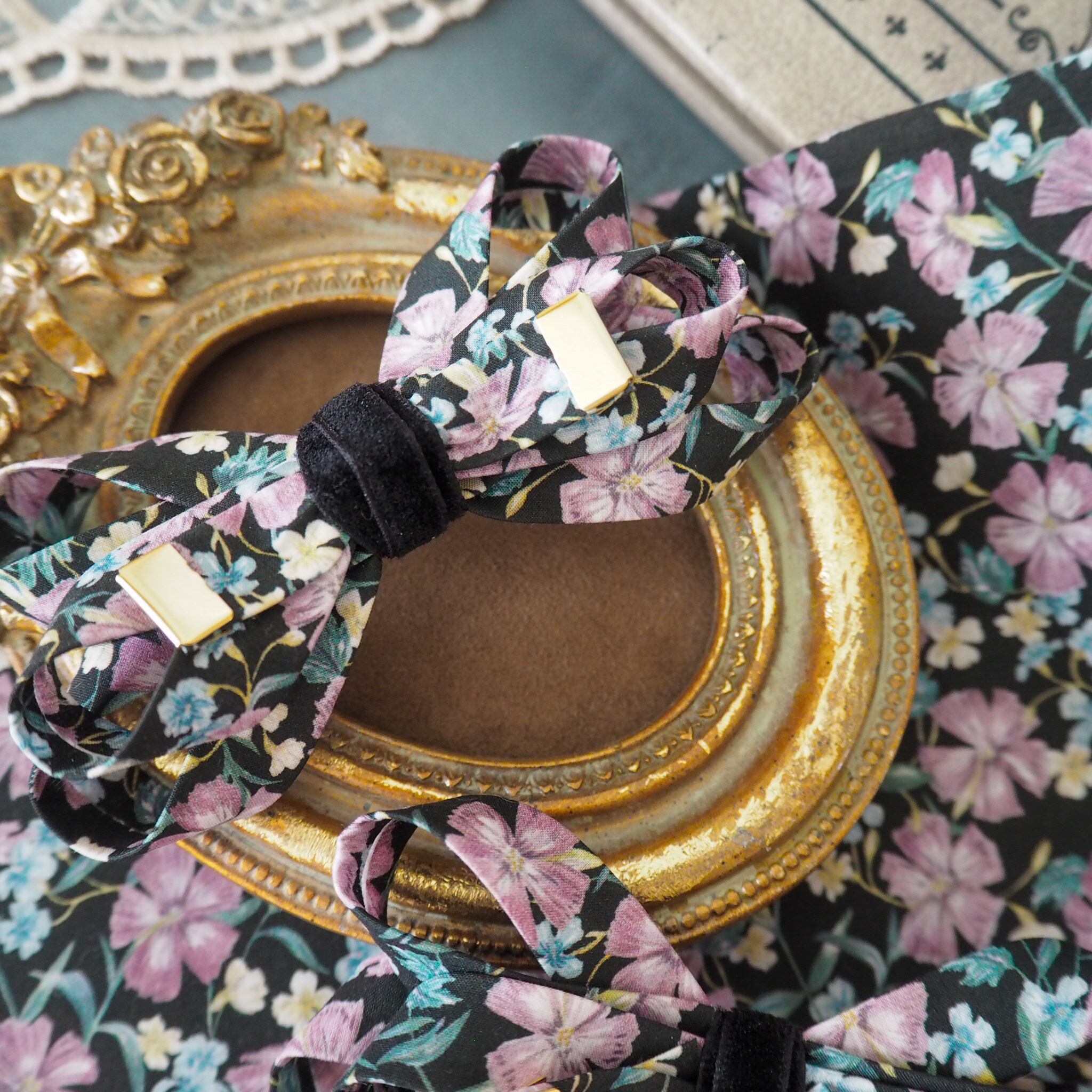 グレースリボンクリップ / リバティプリント【ノーフォークガーデンBLACK 】