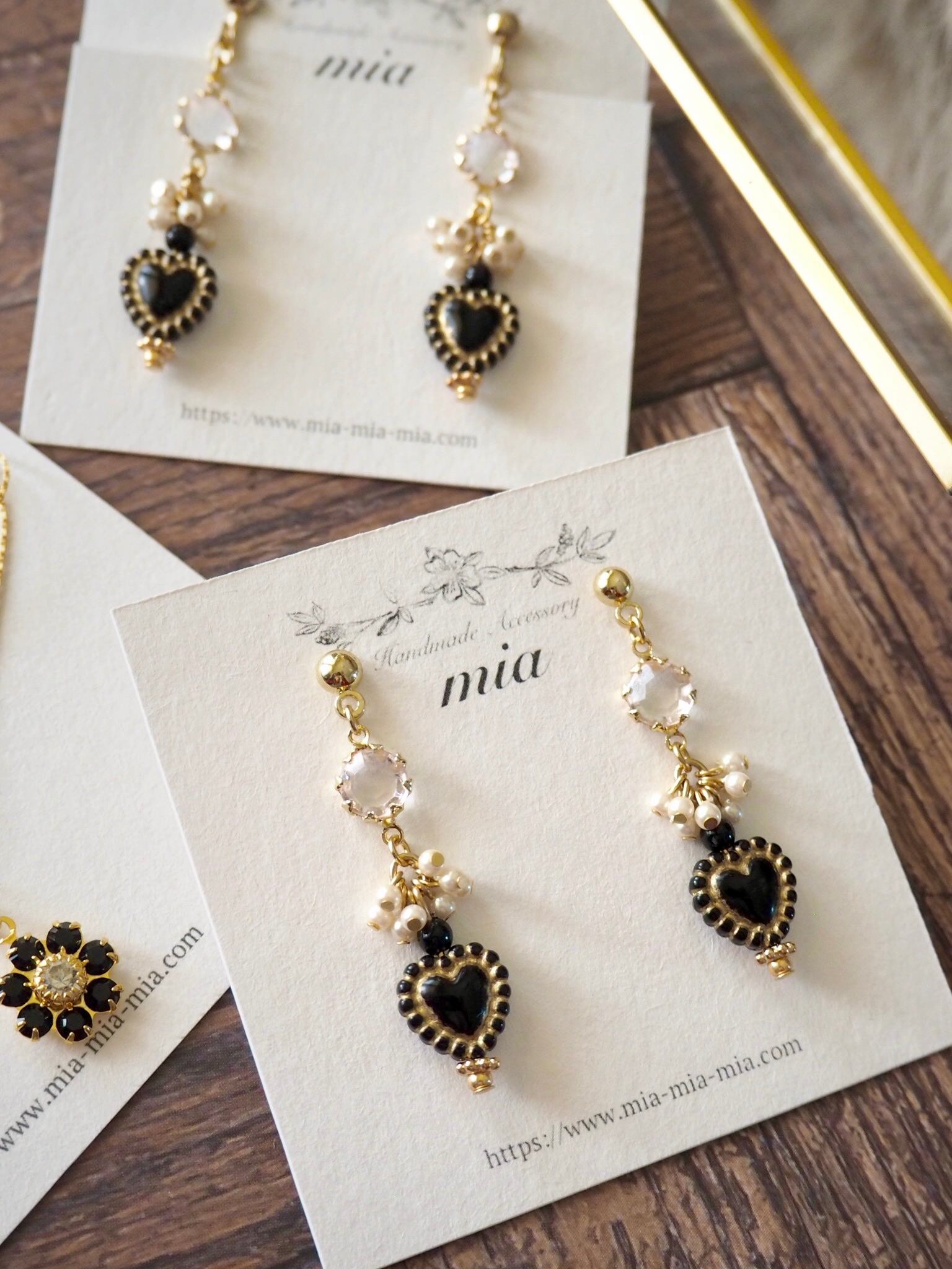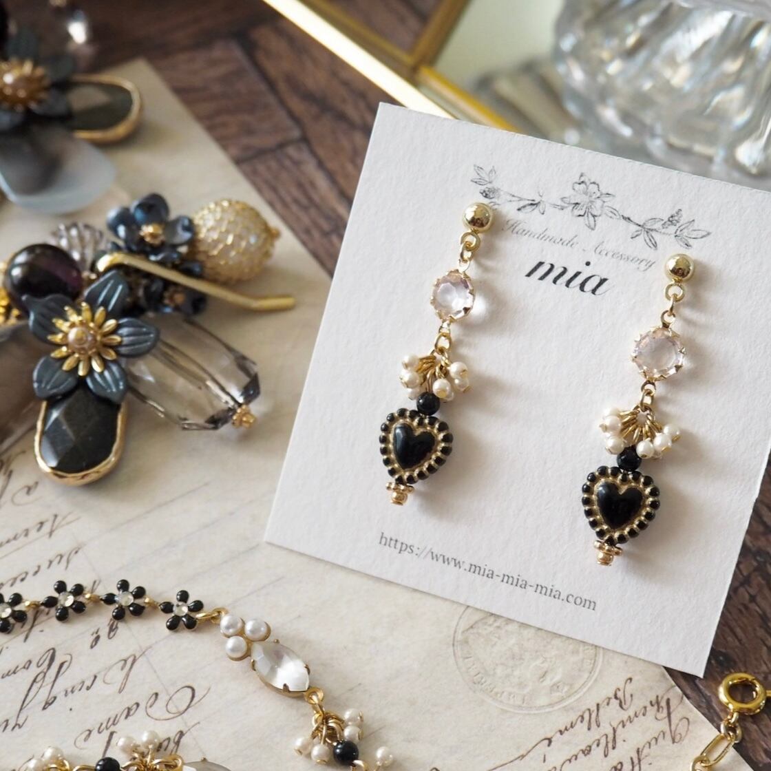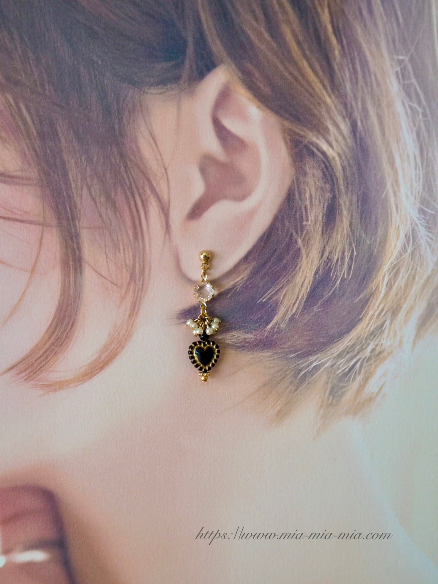 ハートモチーフでも可愛くなりすぎず、甘さとスパイスを効かせた耳飾りを目指しました。