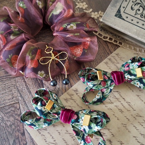 繊細な柄や鮮やかな色彩が特徴のリバティタナローン生地を使用し、世代を越えて長く愛用していただけるリボンクリップに仕立てました。