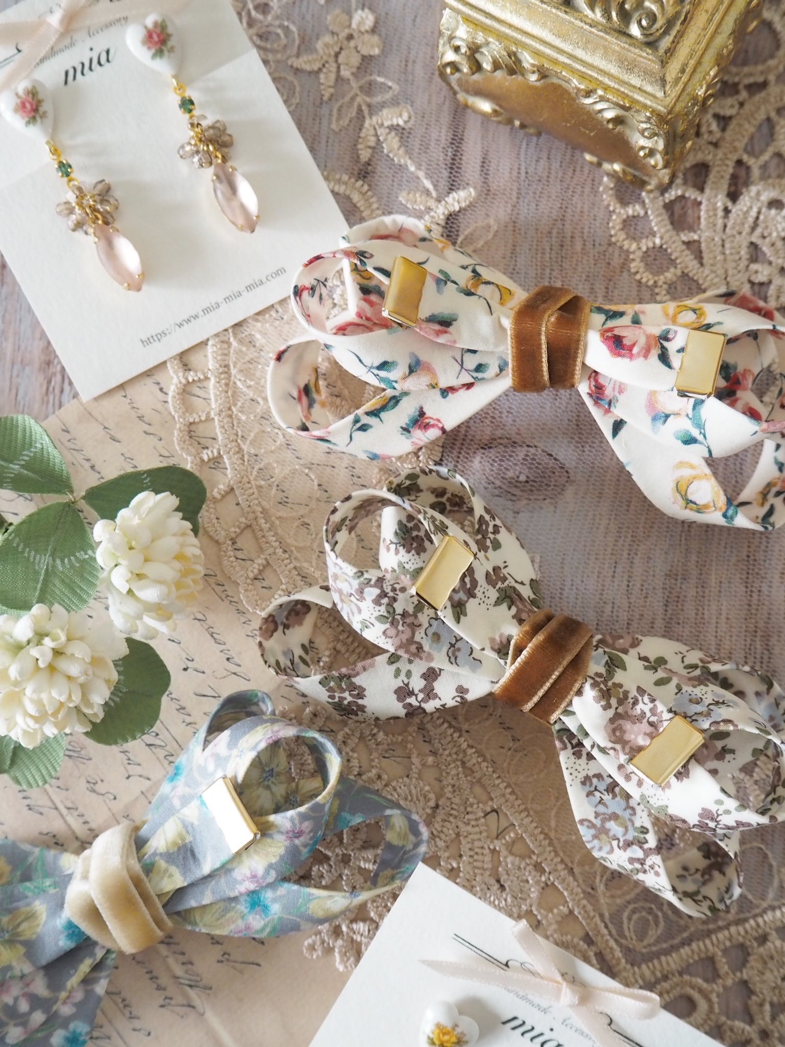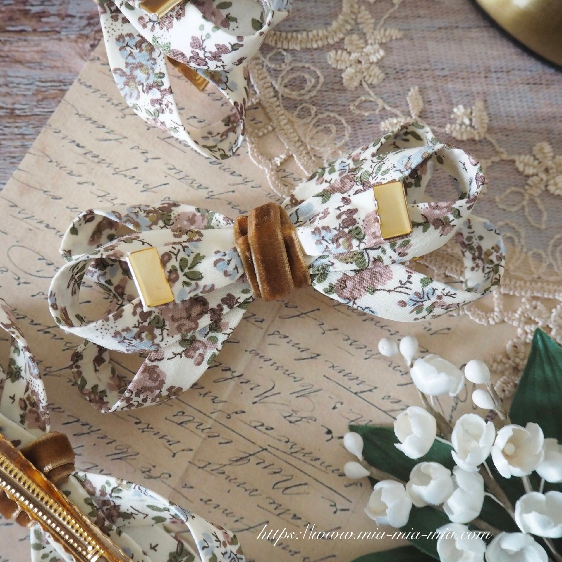 繊細な柄や鮮やかな色彩が特徴のリバティタナローン生地を使用し、世代を越えて長く愛用していただけるリボンクリップに仕立てました。