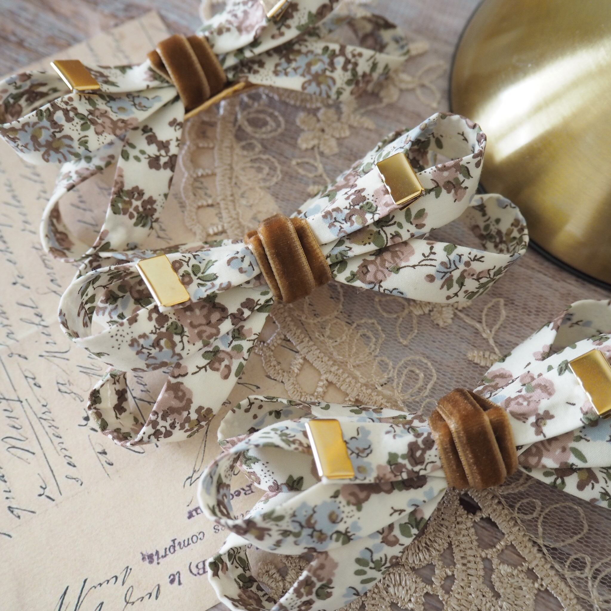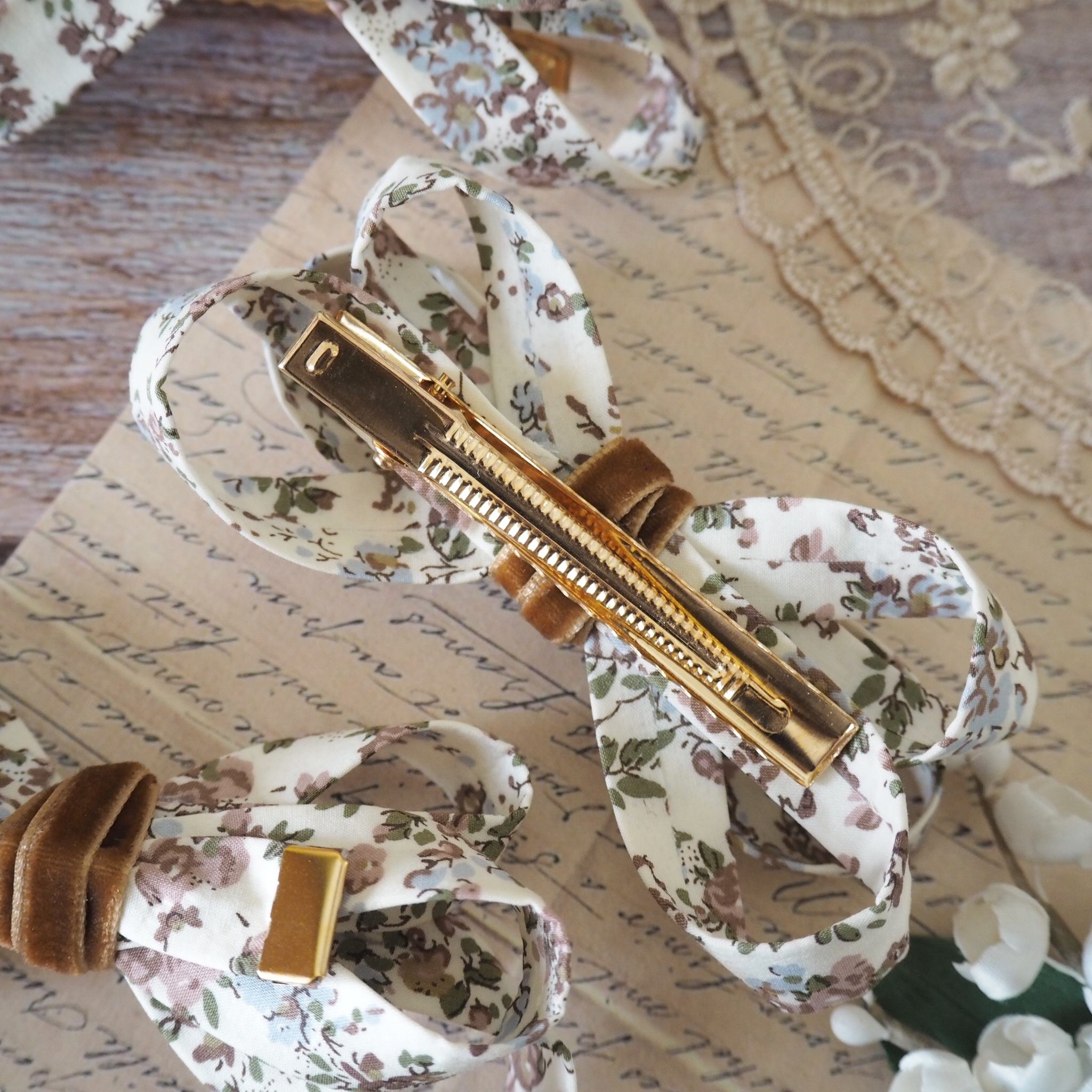 グレースリボンクリップ / リバティプリント【ムーンモス キャメル】