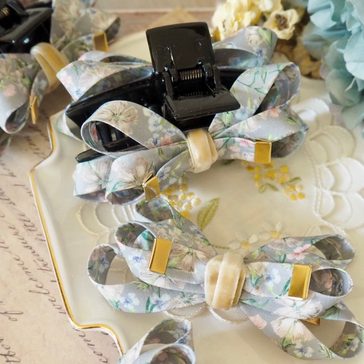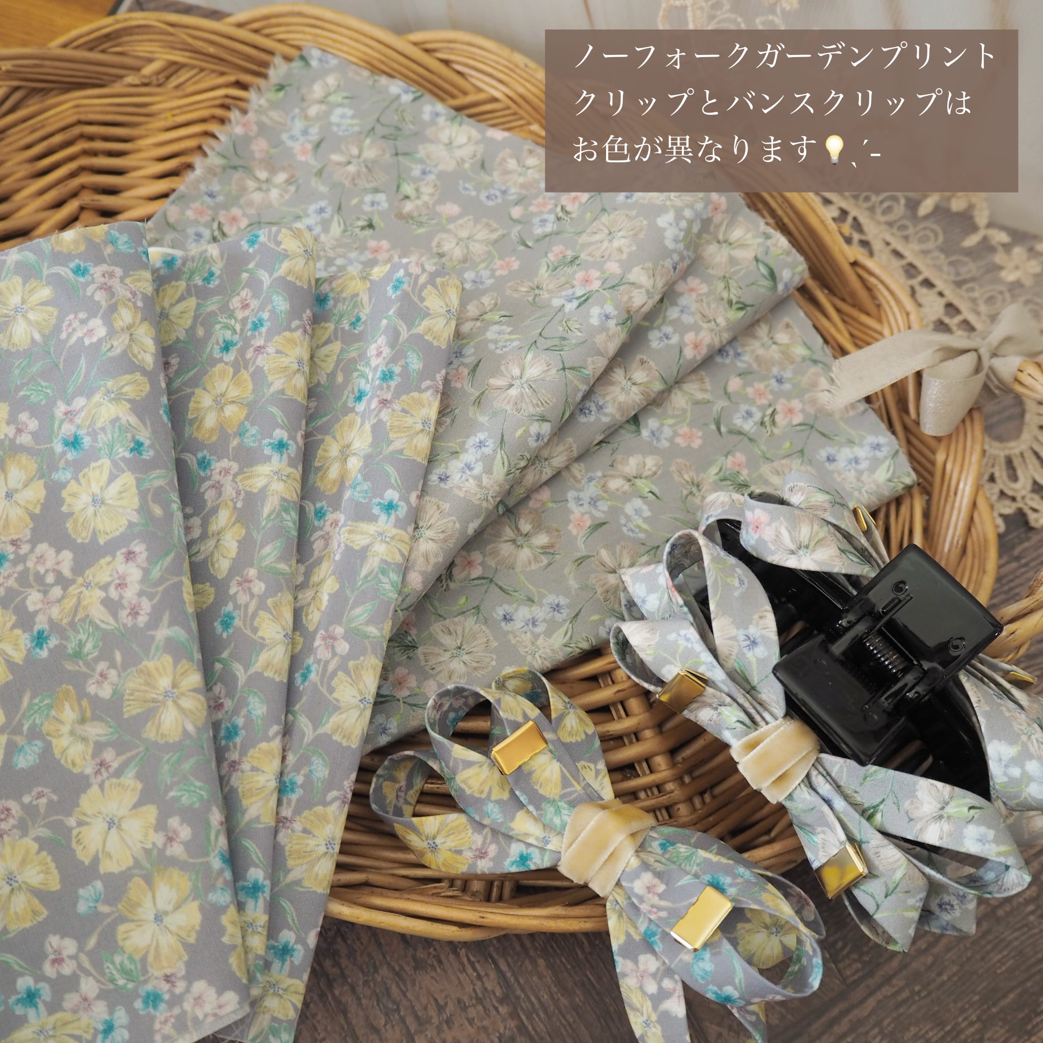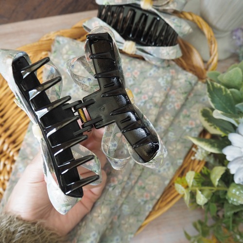 グレースリボン バンスクリップ / リバティプリント ノーフォークガーデン ライトグレー