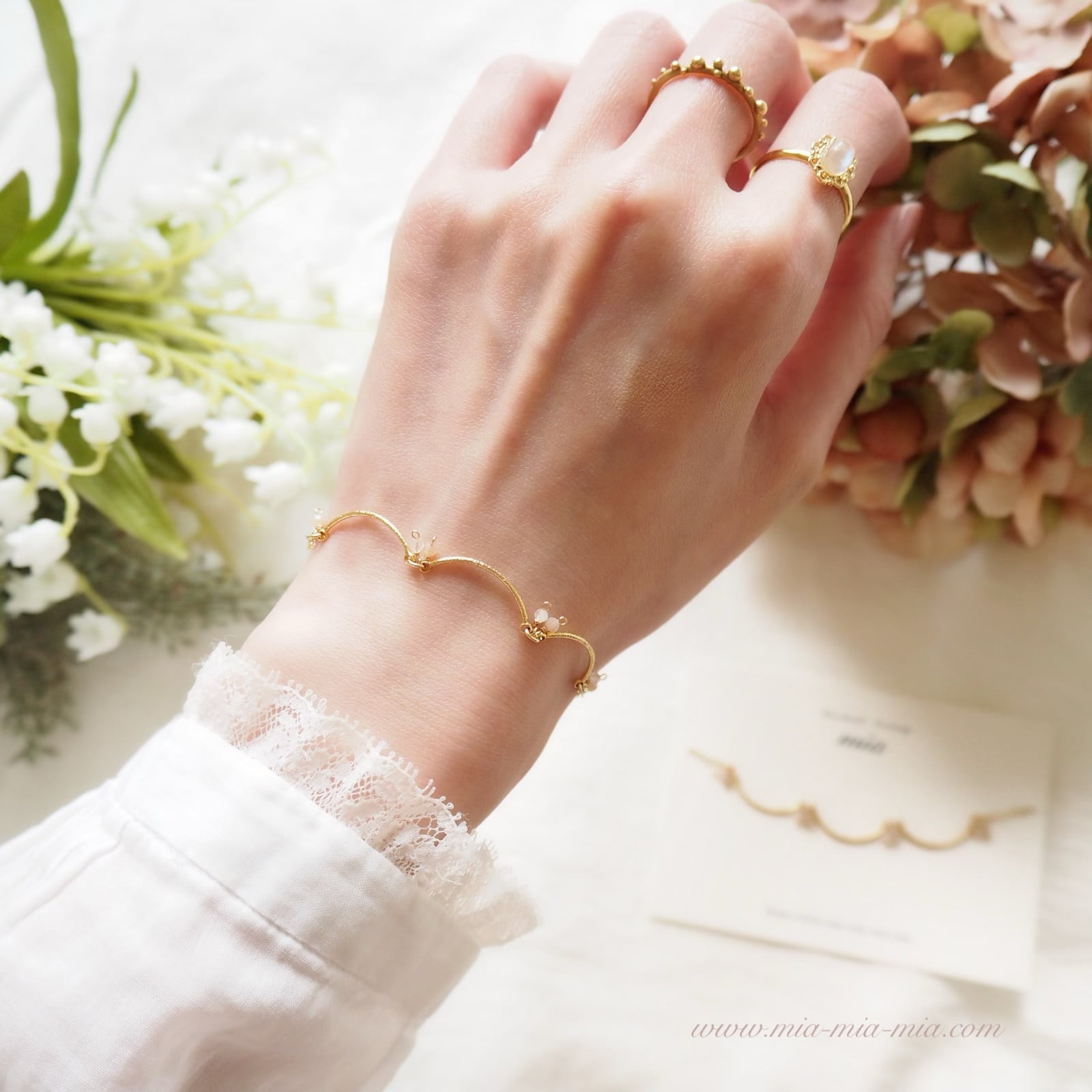 スカラップ調のデザインがフリルの袖のようにも見える華奢なブレスレット。