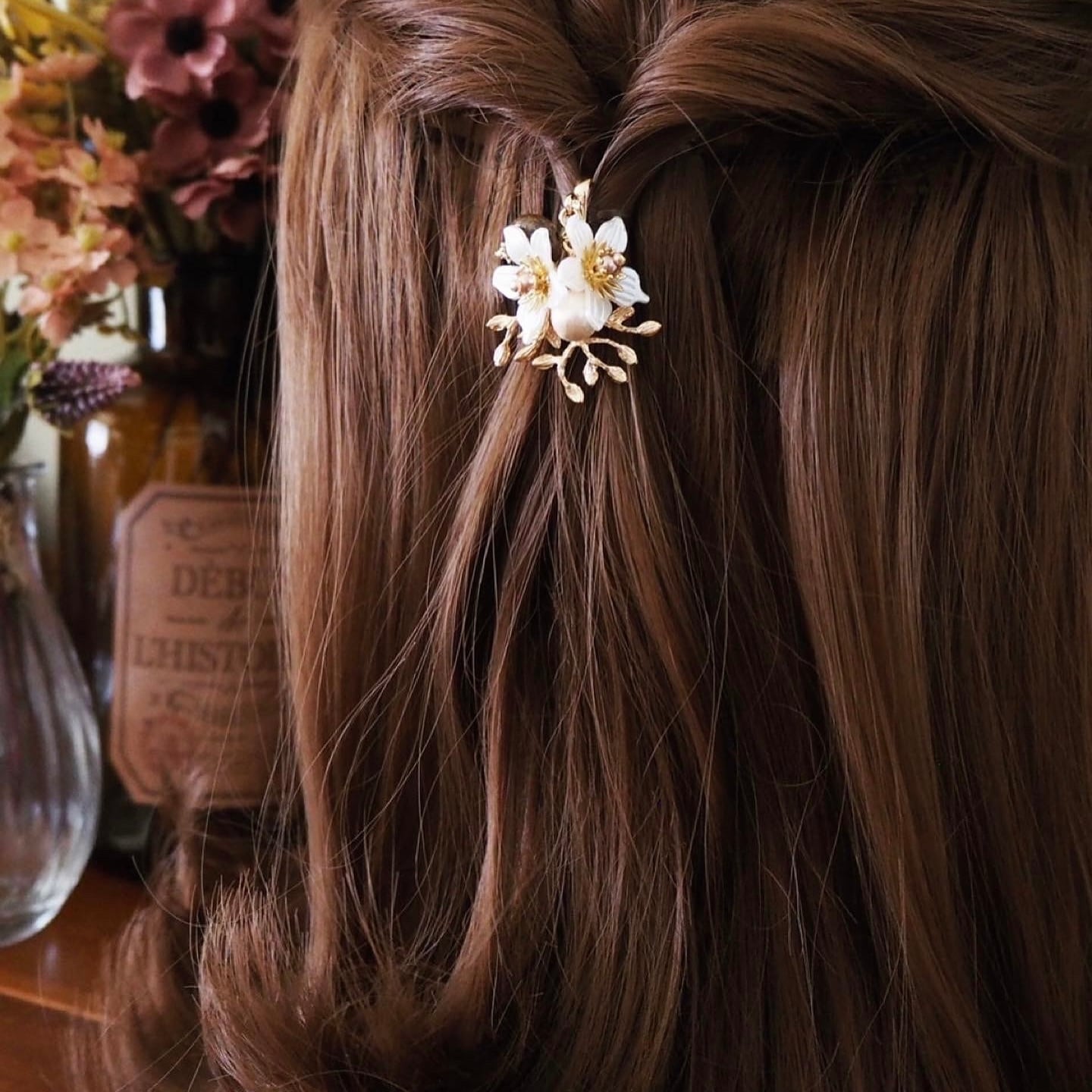 モチーフは縦横3cmほどの大きさなので、短めヘアの方やハーフアップスタイルにも使いやすいサイズ感です。