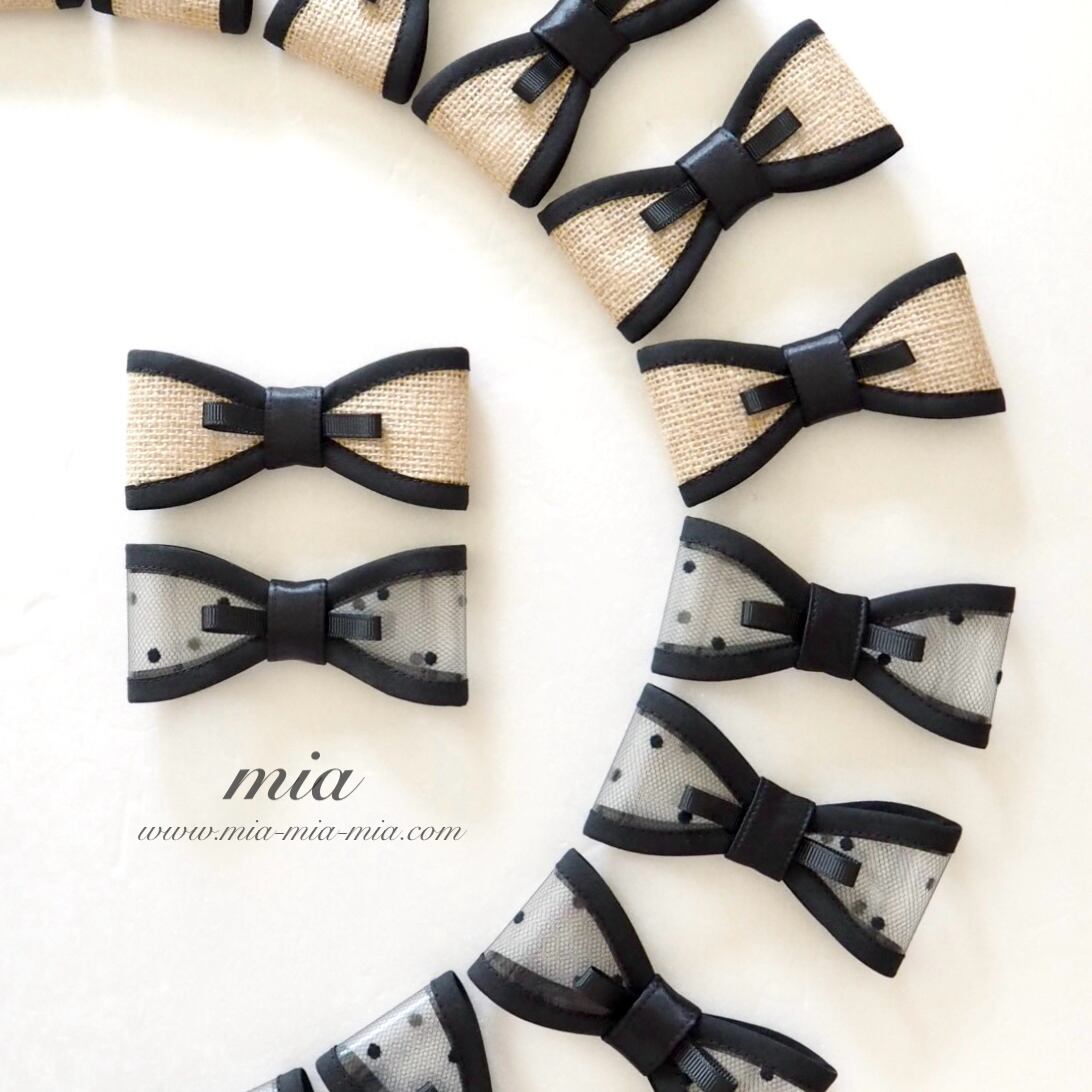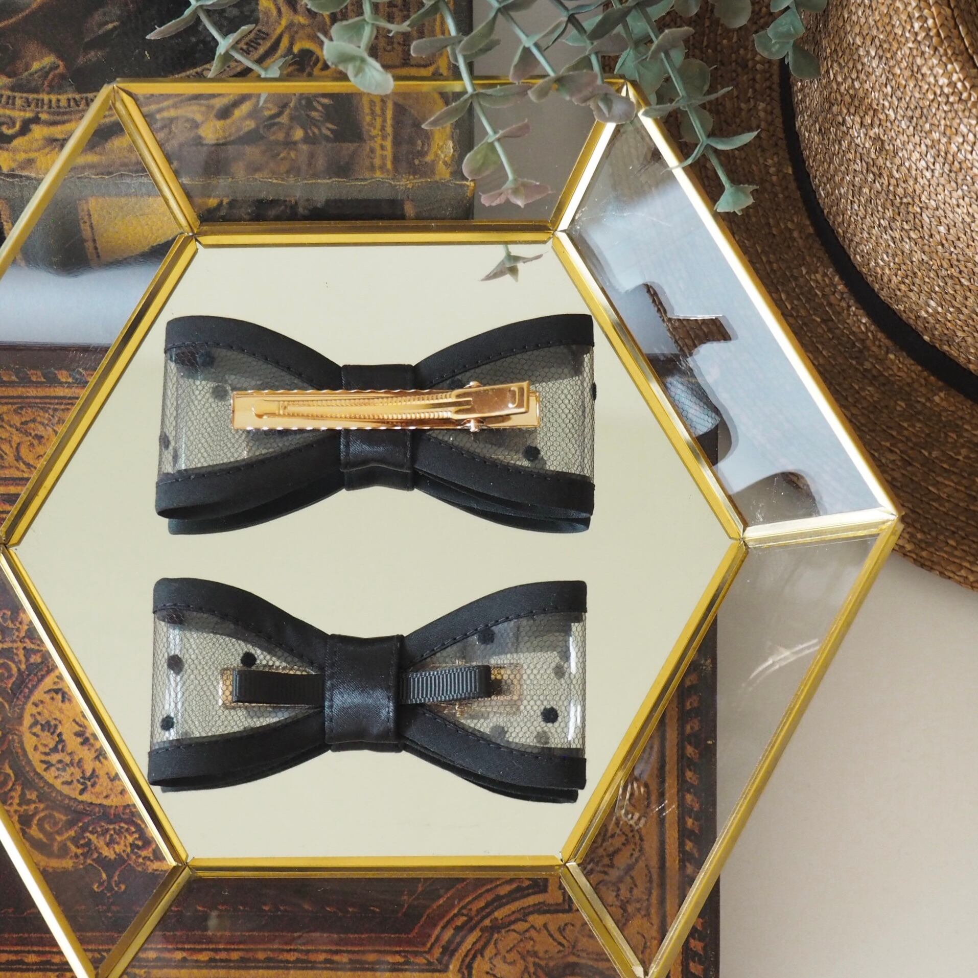 モノトーンでまとめた大人フェミニンなリボンアクセサリー。