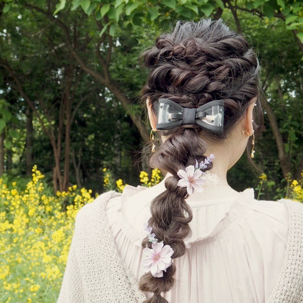 ヘアゴムの結び目を隠せるヘアアクセサリーに